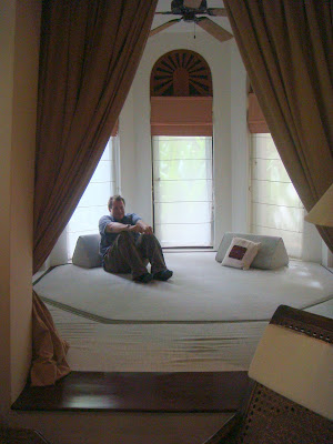 In our bedroom there is a large octagonal relaxing area with drapes and a fan, where Edward felt immediately at home, claiming that this comfortable corner was bigger than his London flat...