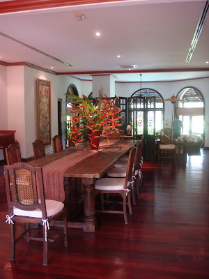 At hourly intervals throughout the afternoon she has enquired whether we'd like a snack...a drink...some fruit....a G&T....could she unpack our suitcases? (! better not.....at the end of a trip the contents of our bags are not exactly for public consumption!) Finally, after showering and changing for dinner, I realised that my linen skirt and top would need ironing - which brought a smile and joy to Wan's eyes as she whisked them away, returning them beautifully pressed some ten to fifteen minutes later.