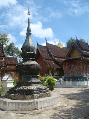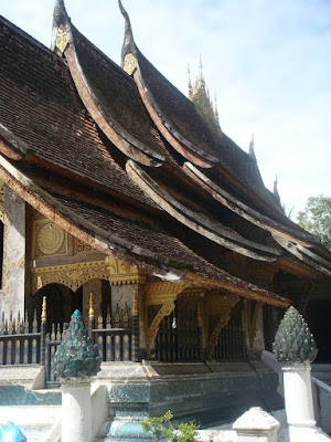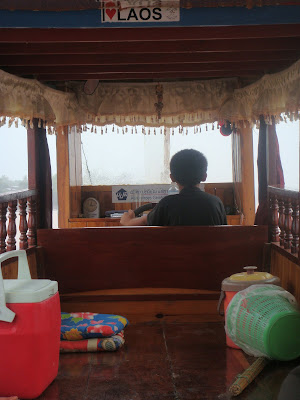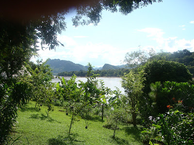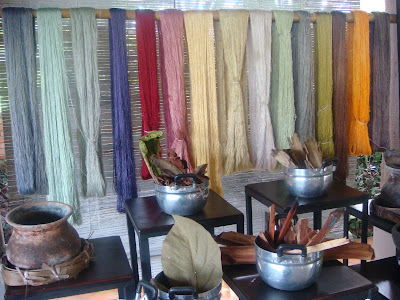 A warm welcome this morning from Mr Morn, the interpreter and guide who greeted me with a mug of bael tea (delicious - hadn't had it before) and who introduced me to the programme for the day. After a bit of background information about sericulture he explained about the natural dyes used in Laos - illustrated by a walk around the garden where most were growing. The view from the workshop was breathtaking and the cool breeze from the river most welcome.